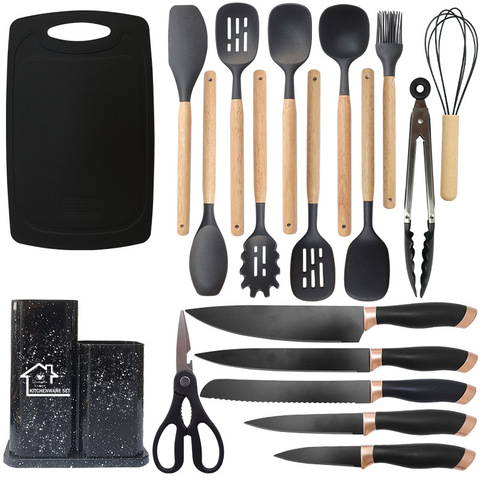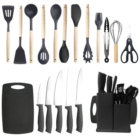 19-Piece Non-Stick Silicone Utensílios Set Cross-Border Household Food Grade Kitchenware cortador sopa colheres e espátulas